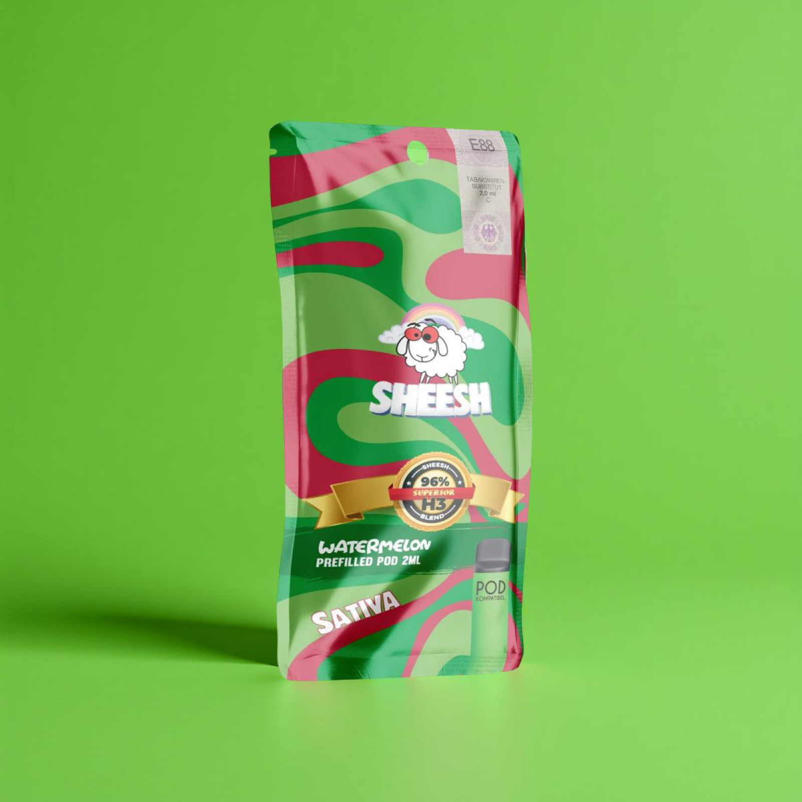 Die Sheesh H3 Vape Pods 2ml enthalten kein Nikotin, jedoch andere aktive Inhaltsstoffe, die bewusstseinsverändernd wirken können. Sie fallen unter die Kategorie "Legal Highs" und sind im Rahmen der geltenden Gesetze frei verkäuflich, solange sie verantwortungsvoll verwendet werden.